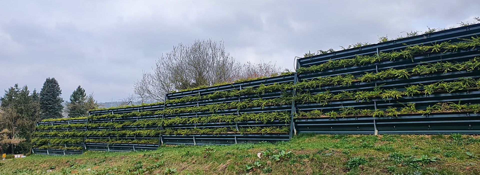 Grâce à un angle de construction plus raide d'un naturawall par rapport à un mur de terre, le sommet se rapproche considérablement de la source de bruit et réduit ainsi le bruit ainsi que l'occupation de l'espace.